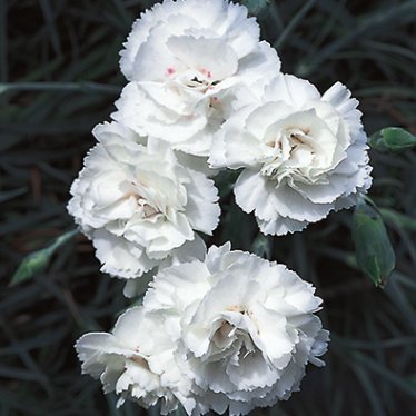 A remarkable variety with compact, silvery blue foliage and large, 2" wonderfully fragrant white flowers. Blooms over a long period when cut back. Excellent for rock gardens, beds, containers and as a fresh cut flower.