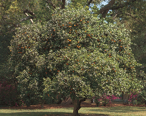 Tree grown primarily for its deliciously juicy, sweet and tangy orange fruit and for making juice. Evergreen foliage works well planted with other tropicals, or for framing a view. Prefers moist, light, well-drained soil.