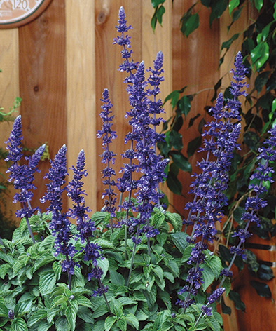 Striking blue flower spikes accent the green foliage and attract butterflies and hummingbirds. Excellent for containers, baskets and garden beds.