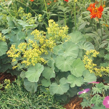 This low-growing, shrubby plant with silken, pleated leaves is a charming addition to shady areas. Plant with hostas, ferns, heuchera and tiarella. Flowers are an excellent filler for cut bouquets. Moist, well-drained soil is best, but will tolerate some drought.